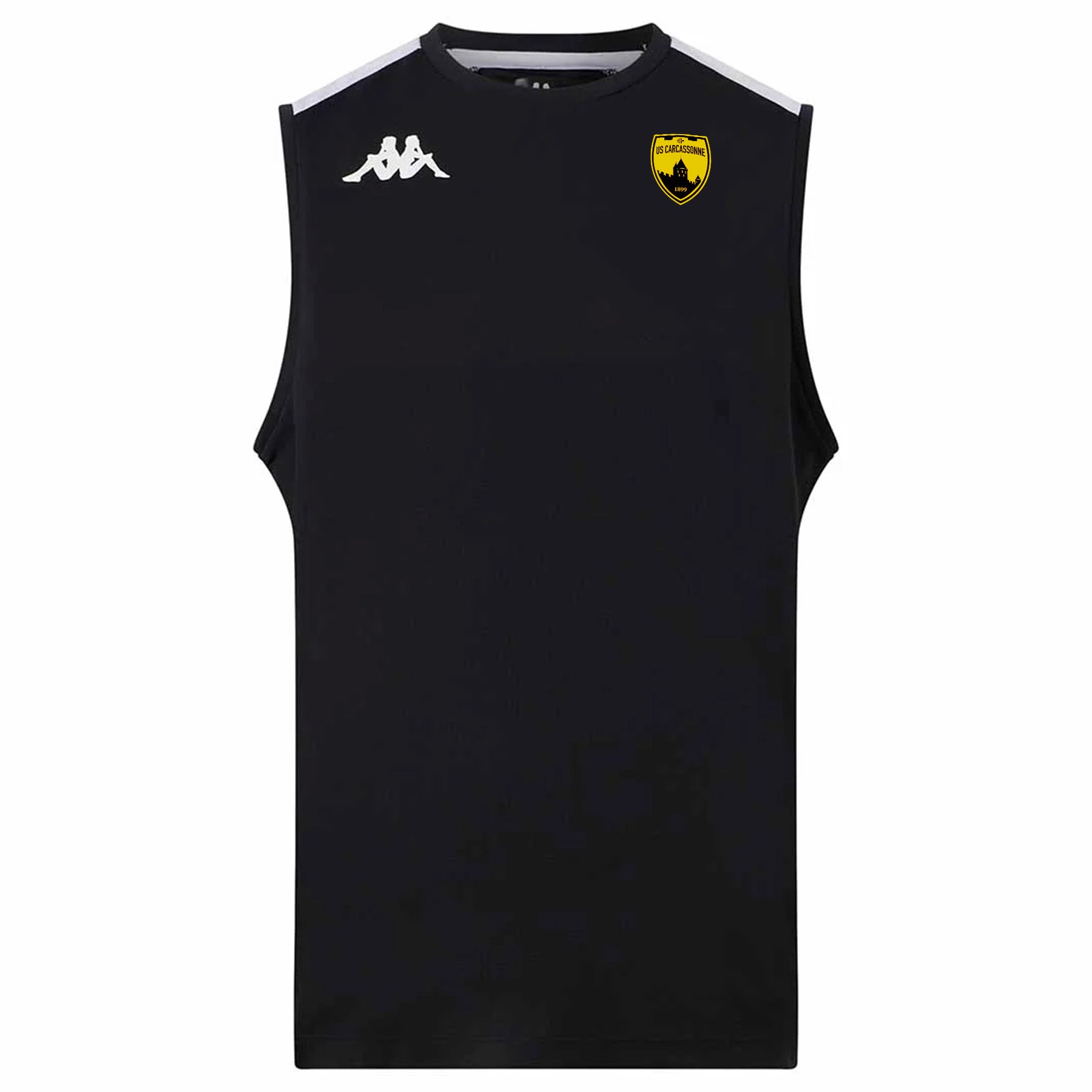 Sans manches, col rond et inserts sur les épaules, logo omini imprimé sur la poitrine. Logo US Carcassonne sur la poitrine.