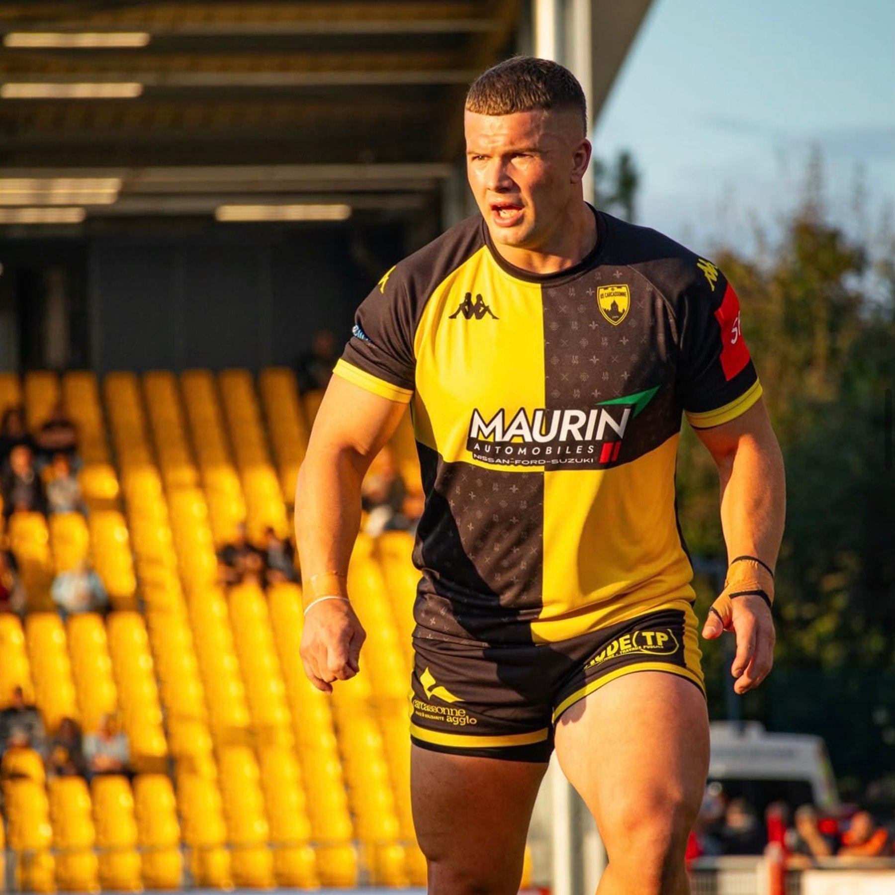 Le maillot officiel porté par les joueurs de l'US Carcassonne à l'échauffement. Logo Kappa sur la poitrine et les épaules. Claim "Défendre Notre Cité" dans le dos, sous le col.